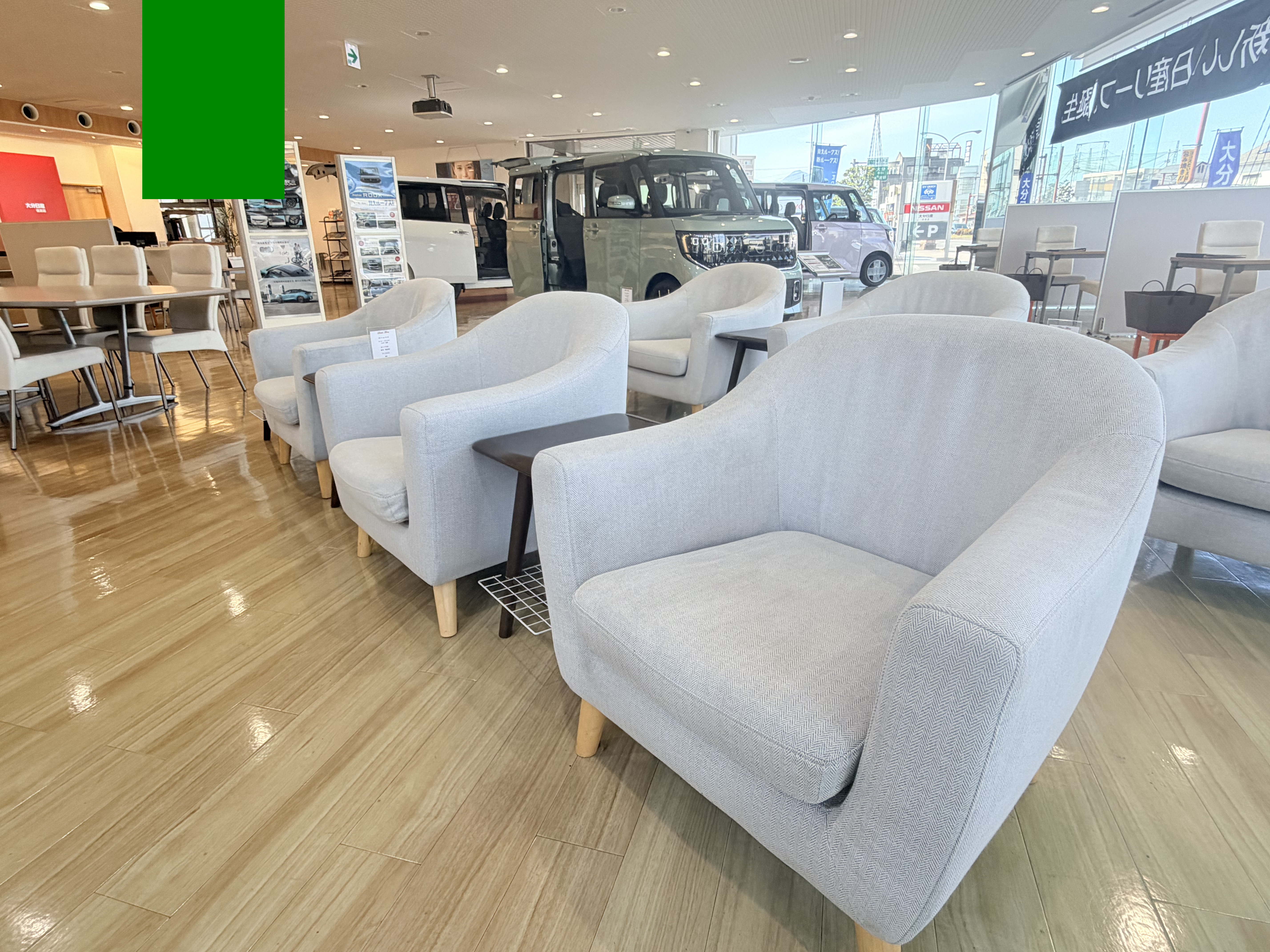 明るい店内で、展示車もご用意しています。